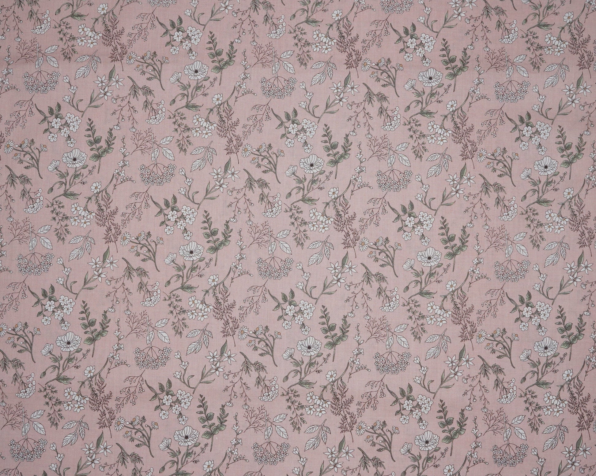 This Sevenberry cotton print features a french-inspired set of white florals on a baby pink background.